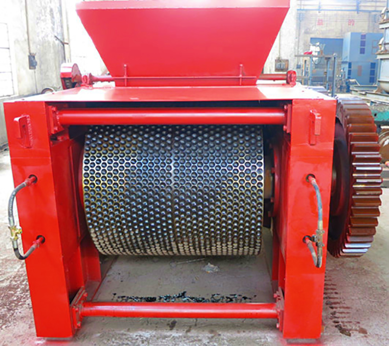 工作原理:通過減速機將動力同時傳遞給兩個壓輥,并使兩個壓輥相向轉動,在兩個壓輥轉動中,物料自然進入壓輥上的球模中,隨著壓輥的轉動,物料承受的壓力有小變大,當物料轉動到兩輥的線接觸點時,物料承受的壓力已達到峰值。在巨大線壓力的作用下,物料由粉狀成為成品球。